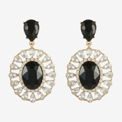 Monet Jewelry Gold Tone Halo Womens Glass Oval Hypoallergenic Drop Earrings