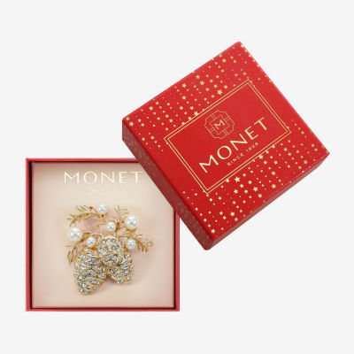 Monet Jewelry Gold Tone Pinecone Glass Pin