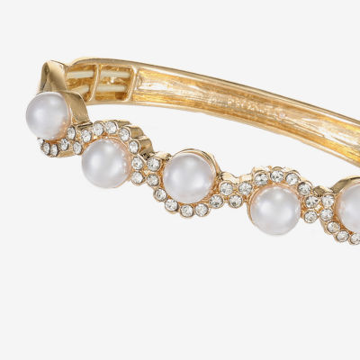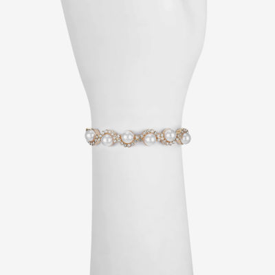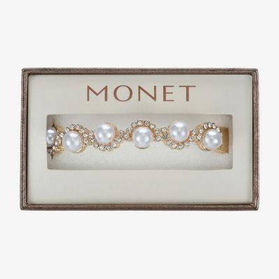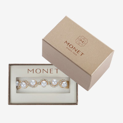 Monet Jewelry Gold Tone Scallop Womens Glass Simulated Pearl Round Stretch Bracelet