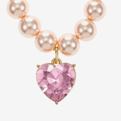 Monet Jewelry Gold Tone Womens Pink Glass Simulated Pearl Heart 2-pc. Jewelry Set