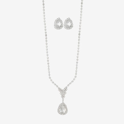 Monet Jewelry Timeless Silver Tone Pendant Necklace & Drop Earrings Womens Glass 2-pc. Jewelry Set