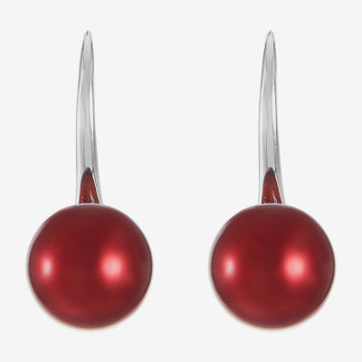 Monet Jewelry Timeless Silver Tone & Red Womens Simulated Pearl Round Drop Earrings
