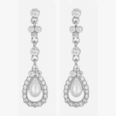 Monet Jewelry Timeless Womens Glass Simulated Pearl Hypoallergenic Drop Earrings