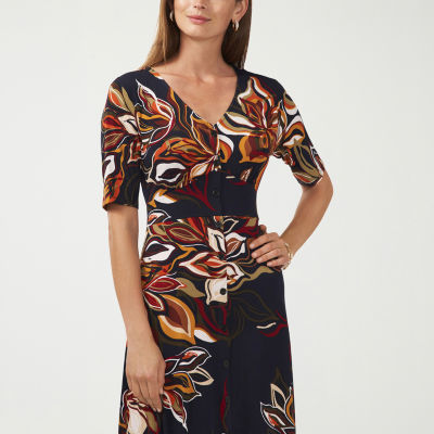 MSK Womens Short Sleeve Floral Midi Fit + Flare Dress