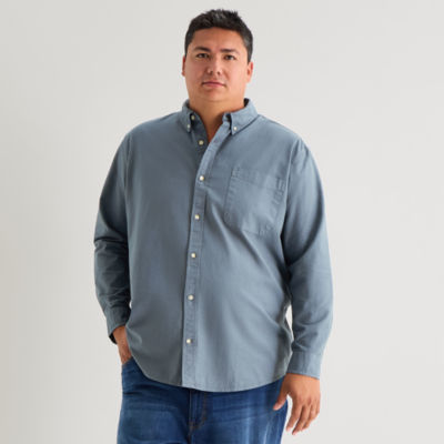 mutual weave Washed Oxford Mens Long Sleeve Classic Fit Big and Tall Button-Down Shirt