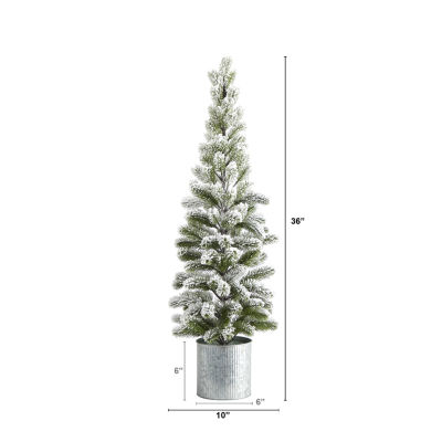 Nearly Natural 3 Foot Flocked Pine In Tin Planter Christmas Tree