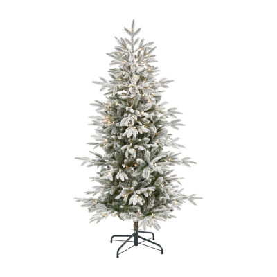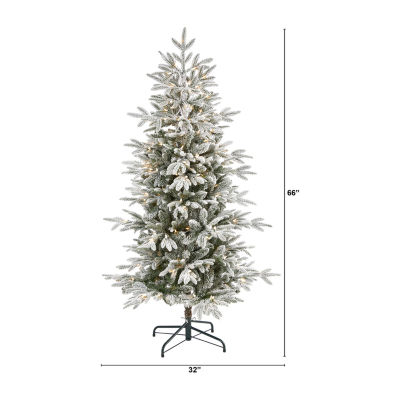 Nearly Natural 5 1/2 Foot Flocked Manchester Spruce With 560 Bendable Branches And 200 Lights Pre-Lit Christmas Tree