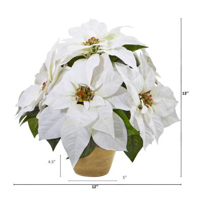 Nearly Natural Poinsettia Ceramic Vase Christmas Tabletop Decor