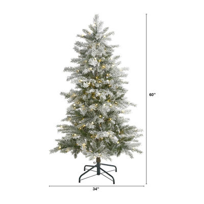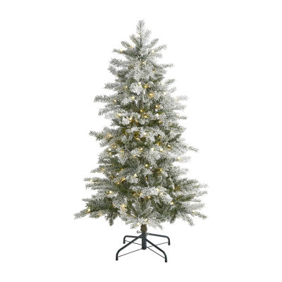 Nearly Natural Slim 5 Foot Pre-Lit Flocked Spruce Christmas Tree