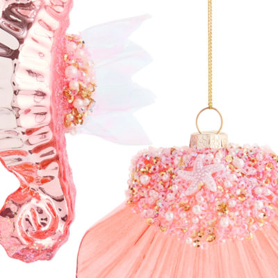North Pole Trading Co. Pink Sea Hourse And Oyster Set 2-pc. Christmas Ornament