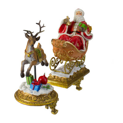 Northlight Gold Santa And Reindeer Glittered 9.5in 3-pc. Christmas Stocking Holder