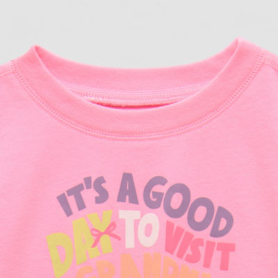Okie Dokie Toddler Girls Round Neck Short Sleeve Adaptive Regular Fit Graphic T-Shirt