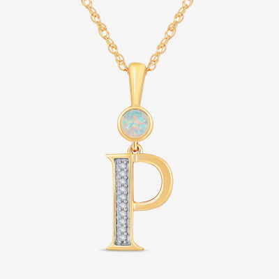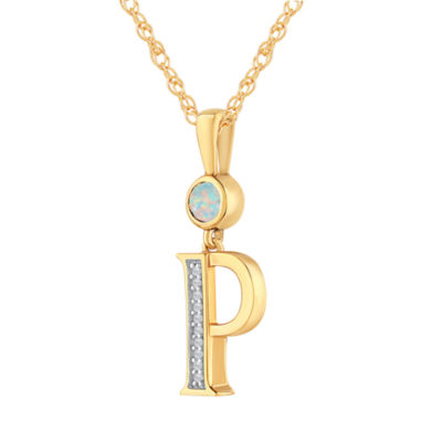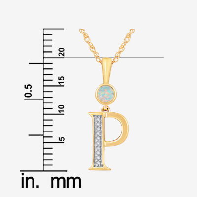 P" Womens Lab Created White Opal 14K Gold Over Silver 18 Inch Pendant Necklace