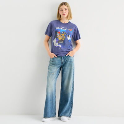 Pixar Boyfriend Womens Juniors Crew Neck Short Sleeve Loose Fit Wall-E Graphic T-Shirt