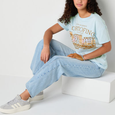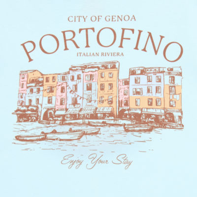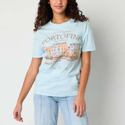 Portofino Boyfriend Tee Womens Juniors Crew Neck Short Sleeve Regular Fit Graphic T-Shirt