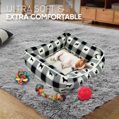 Precious Tails 24" Black Plaid Cuddler Pet Bed