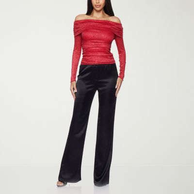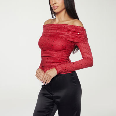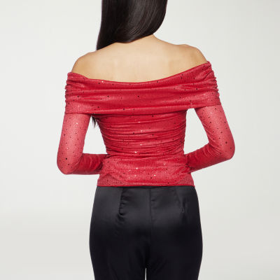 Premier Amour Off The Shoulder Womens Straight Neck Long Sleeve Blouse