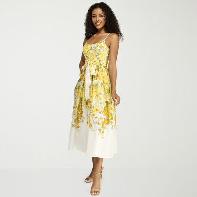 new!Premier Amour Womens Sleeveless Floral Midi Fit + Flare Dress