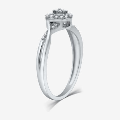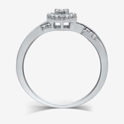 Promise My Love Sterling Silver Womens 1/10 CT. T.W. Natural White Diamond Sterling Silver Heart Side Stone Halo Promise Ring
