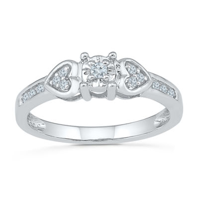 Promise My Love Womens 1/10 CT. T.W. Natural White Diamond Sterling Silver Heart Side Stone Promise Ring