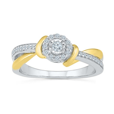 Promise My Love Womens 1/5 CT. Natural White Diamond 10K Gold Sterling Silver Round Bypass Halo Promise Ring