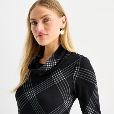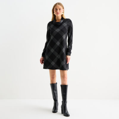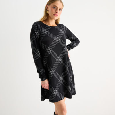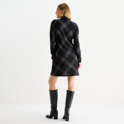 R & K Originals Womens Long Sleeve Plaid Shift Dress