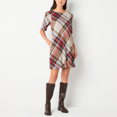 R & K Originals Womens Short Sleeve Plaid Shift Dress