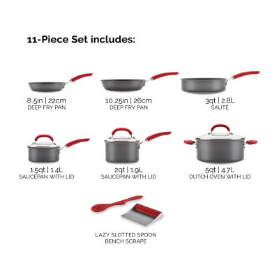 49 Reviews1 Questions & 2 Answers7824325ColorRachael Ray Create Delicious Hard Anodized 11-Pc. Cookware SetShop all Rachael Ray12345678Add to CartFeaturesNon-stickHard AnodizedInduction SafeOven SafeDishwasher SafeHeat Resistant HandleLifetime LimitedProduct DetailsShipping & Returns Reviews(49)Questions & AnswersAdd To Cart