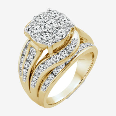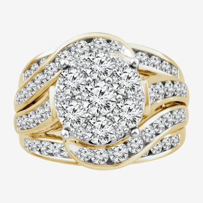 Round 3 CT.T.W. Natural Diamond Side Stone Engagement Ring in 10K or 14K Gold