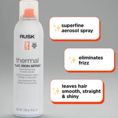 1 ReviewsAsk a Question0650292Rusk Thermal Iron Argan Oil Infused Heat Protectant 8 oz.12345678Add to CartHaircare AdvisorFind solutions for your hair typeProduct DetailsShipping & Returns Shop The LookReviews(1)Questions & AnswersAdd To Cart
