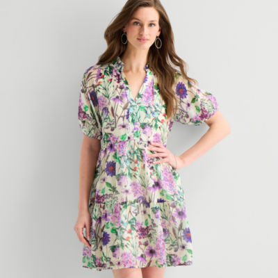 new!Sam And Jess Womens Short Sleeve Floral Shift Dress