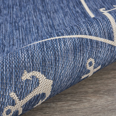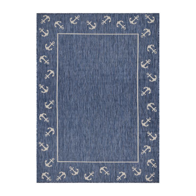 Samantha Nautical Anchor Border Indoor Outdoor Rectangular Area Rug