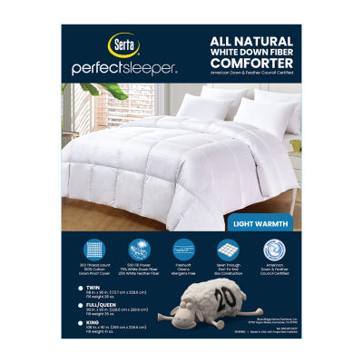 32 Reviews3 Questions & 2 Answers7180436ColorproductSerta 300 Thread Count Light Warmth White Down Fiber ComforterShop all Serta12345678Add to CartFeaturesHypoallergenicDownLightweightMachine WashProduct DetailsShipping & Returns Reviews(32)Questions & AnswersAdd To Cart
