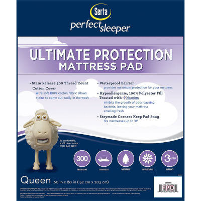 109 Reviews8 Questions & 16 Answers7173009ColorproductSerta® Perfect Sleeper® Microban® Ultimate Protection 300tc Mattress PadShop all Serta12345678Add to CartFeaturesWaterproofStain ResistantHypoallergenicMachine WashProduct DetailsShipping & Returns Reviews(109)Questions & AnswersAdd To Cart