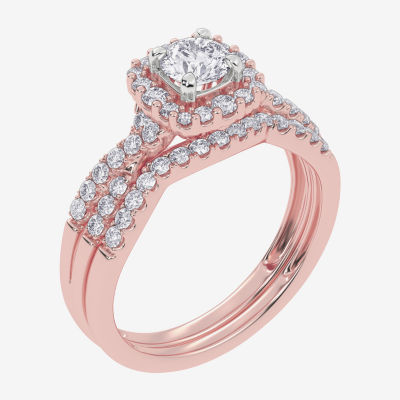 Signature By Modern Bride (G-H / Si1-Si2) Womens 7/8 CT. T.W. Lab Grown White Diamond 10K White Gold Side Stone Halo Bridal Set