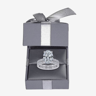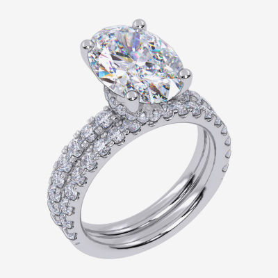 Signature By Modern Bride (G / Vs2-Si1) Womens 4 CT. T.W. Lab Grown White Diamond 14K Gold Oval Side Stone Bridal Set