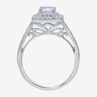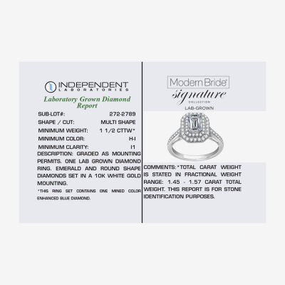 Signature By Modern Bride (H-I / I1) Womens 1 1/2 CT. T.W. Lab Grown Diamond 10K White Gold Side Stone Halo Engagement Ring