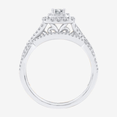 Signature By Modern Bride Womens 3/4 CT. T.W. Natural White Diamond 10K Gold Cushion Bridal Set