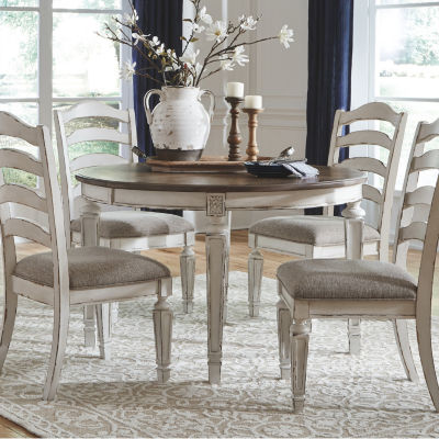 Write a Review7 Questions & 2 Answers7960251Signature Design by Ashley Realyn 5-Piece Oval Extension Ladderback Dining SetShop all Signature Design By Ashley12345678Add to CartProduct DetailsShipping & Returns Reviews(0)Questions & AnswersAdd To Cart