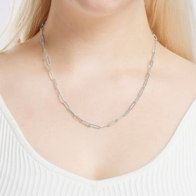 Silver Reflections Textured Womens Pure Silver Over Brass 20 Inch Paperclip Chain Necklace