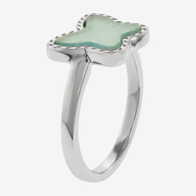 Silver Treasures Genuine Stone Womens Green Amazonite Sterling Silver Butterfly Delicate Band