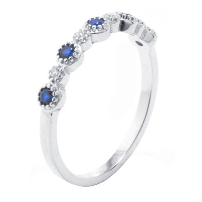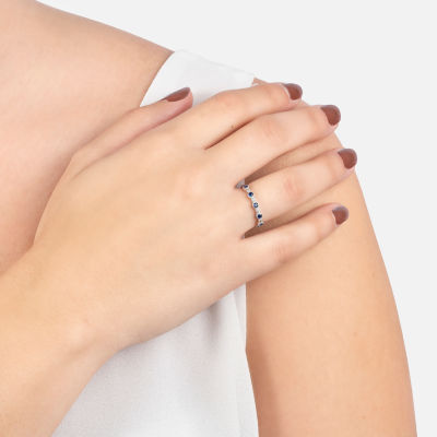 Silver Treasures Womens Blue Spinel Sterling Silver Delicate Band