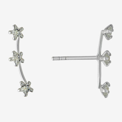 Silver Treasures Womens Cubic Zirconia Sterling Silver Star Ear Climbers