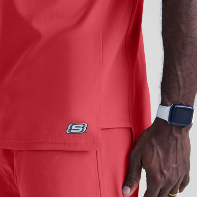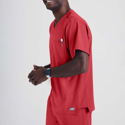 Skechers Sk0112 Structure 1-Pocket Mens V Neck Short Sleeve Tag Free Stretch Fabric Moisture Wicking Scrub Top