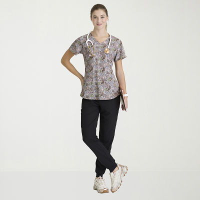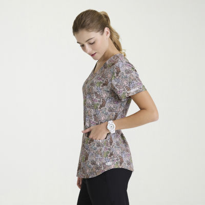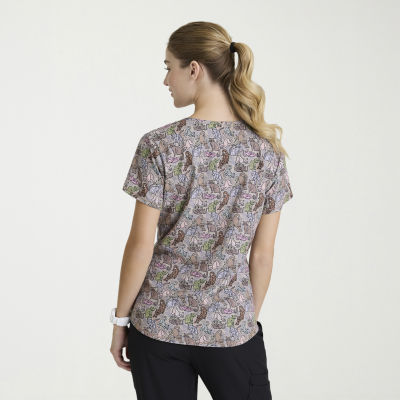 Skechers Skt021 Essence 3-Pocket Print Womens V Neck Short Sleeve Tag Free Stretch Fabric Moisture Wicking Scrub Top