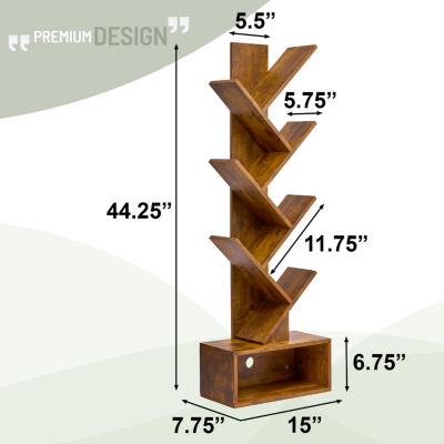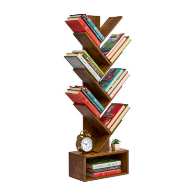 new!Sorbus 7-Tier Zigzag Tree Bookcase 7-Shelf Shelf with Baskets