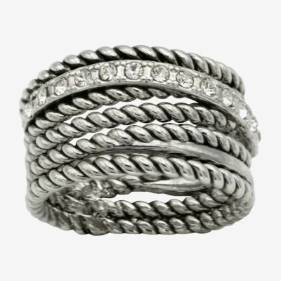 Sparkle Allure Antique Rope Faux Stacked Womens 10MM Crystal Pure Silver Over Brass Band