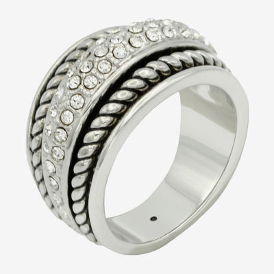 Sparkle Allure Antique Twist Womens 6.5MM Crystal Pure Silver Over Brass Band