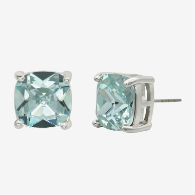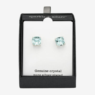 Sparkle Allure Blue Crystal 12.4mm Cushion Stud Earrings
