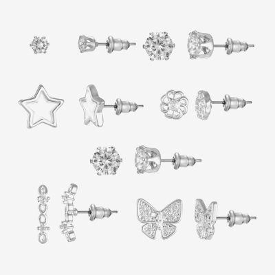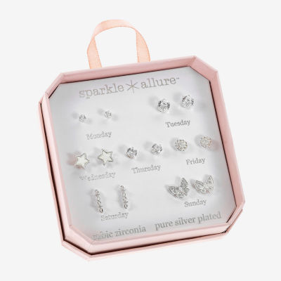 Sparkle Allure Days Of The Week Womens Cubic Zirconia 14K Gold Over Brass Butterfly Flower Star 7 Pair Earring Set